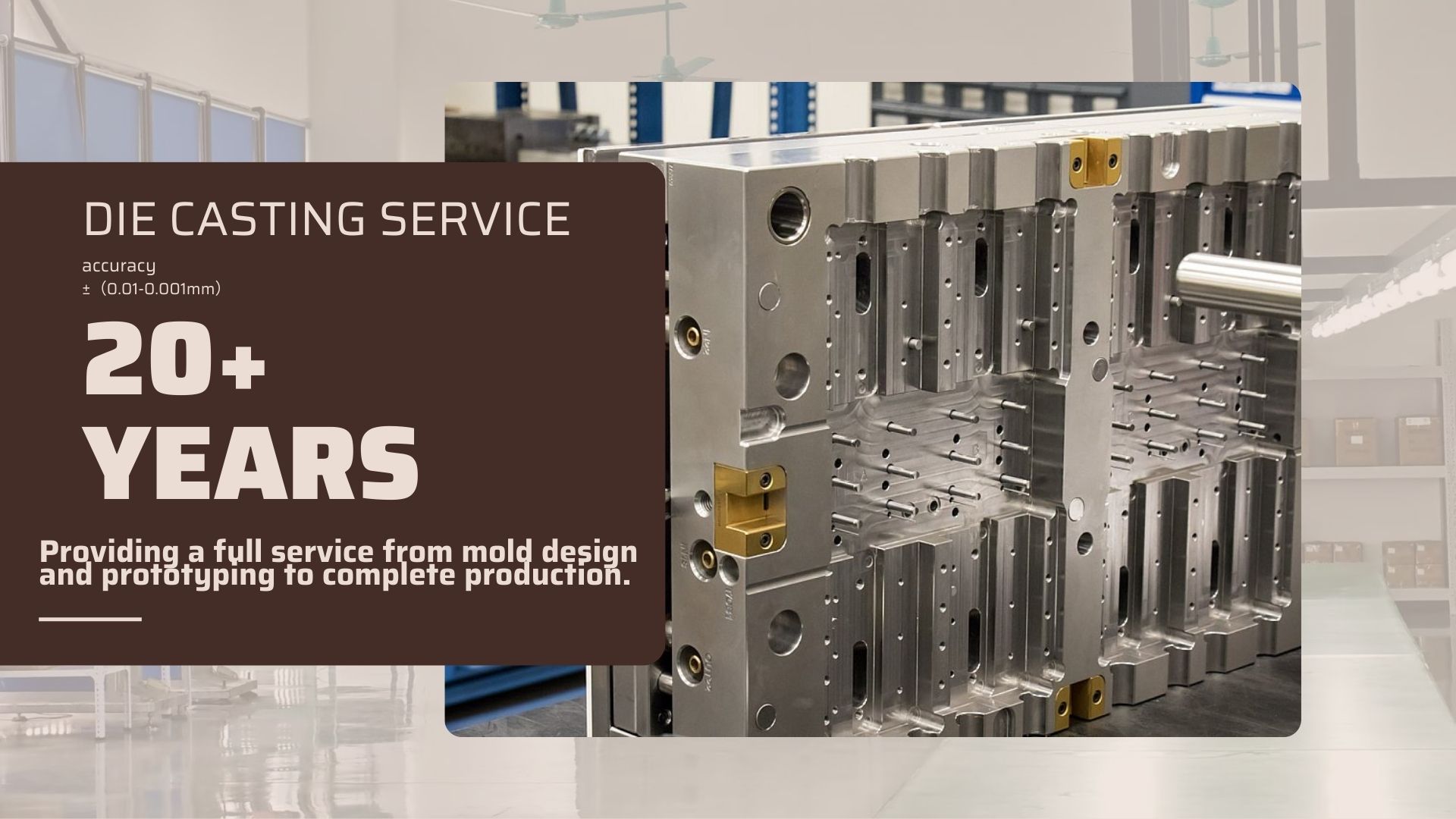 Look no further than us! With over 20+ years of experience Injection mold & Injection molding & Die casting service.
